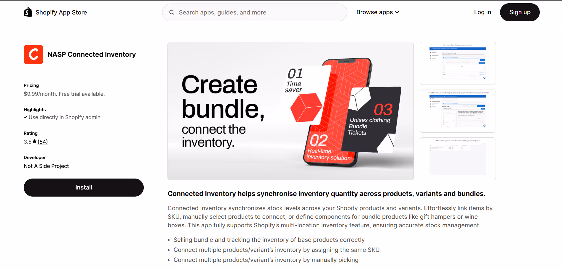 Starts at $49/month, with all core inventory sync features (including bundles) included in the base plan.