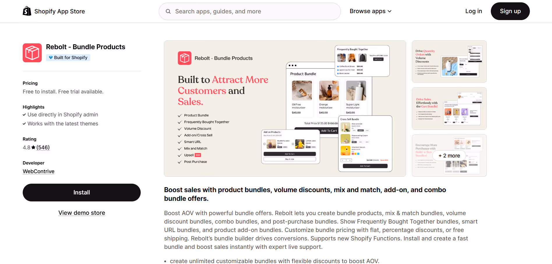 Rebolt Bundles is built for flexibility, whether you sell fixed kits or customizable bundles. It supports real-time inventory syncing and works well with Shopify discounts and promos.